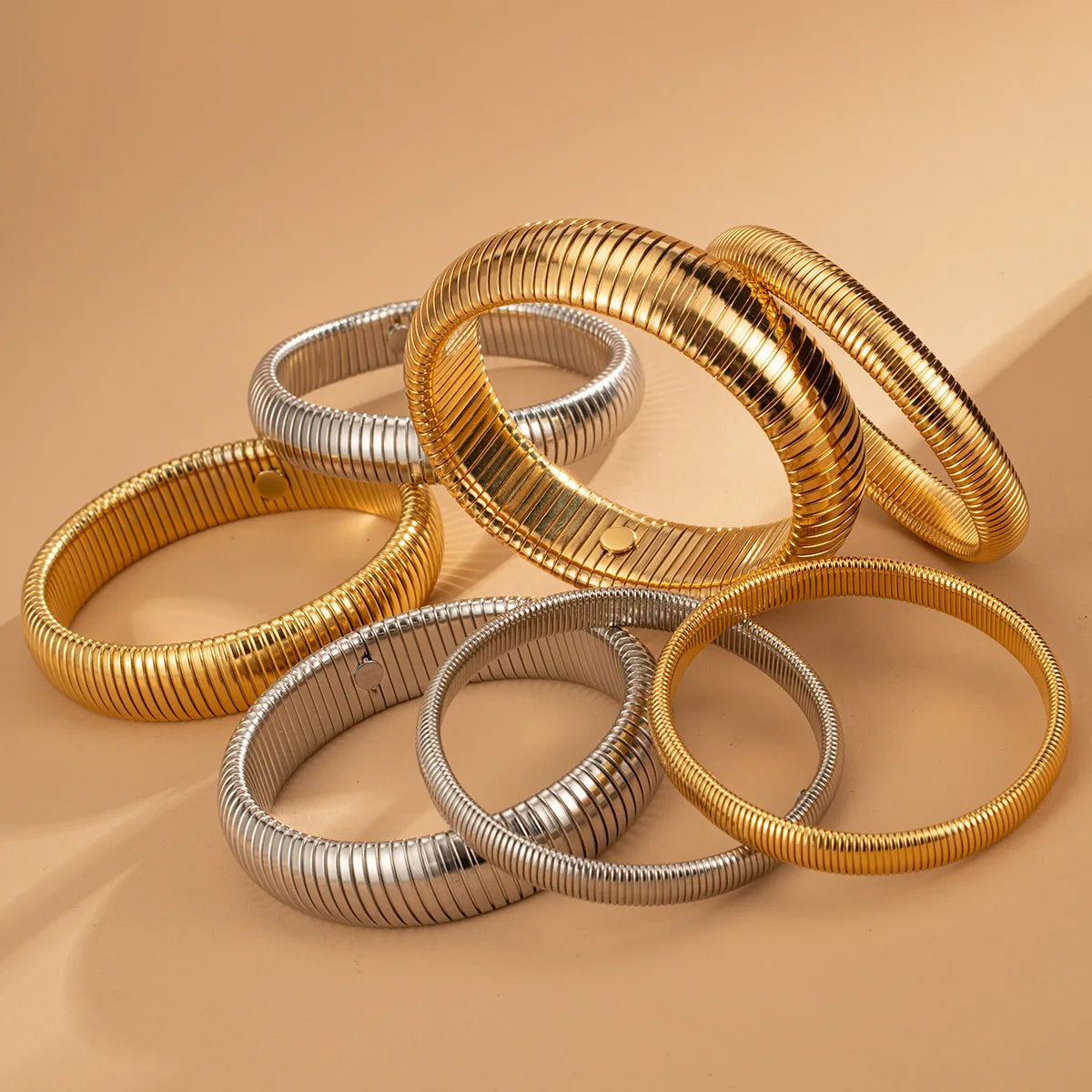 Peri'sBox Elastic stainless steel thick metal punk bracelet women's18k gold-plated charm 8/10/12/20/16MM custom elastic bracelet